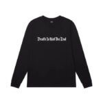 - Classic Death Is Not The End logo design on Gildan Ultra Cotton long sleeve t-shirts.