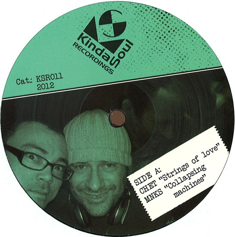 Kinda Soul Recordings is finally back with a 3 track ep featuring Chet, Mnks (a project by M.Napoletano & Ksoul), Isoul8 & K.Tatham. This time the label wanna focus on the hidden sides of our past experience before starting a new phase of our little history. “Strings of love” by Chet is an obscure sexy house track done in Dresden and hardly played by the infamous Dj Tiny back in the days. I managed to have this cdr 6 or 7 years ago and never left my bag. “Collapsing Machines” by Ksoul & M.Napoletano is a sinister jazzy industrial track produced live in one take only at Marcello’s studio a couple of years ago trying to explore many sides of our musical taste. The b-side feature an awesome unreleased track by the reverend Isoul8 & Kaidi Tatham on keys (courtesy of Sonar Kollektiv/Neroli). Isoul8 aka Volcov is one of my main influences in the past 15 years and it still is above all because of his wide knowledge of the “hardcore” boogie scene of the eighties and not only. I’m also very proud and thankful to have Kaidi Tatham here on keys in this extremely classy deep house track.