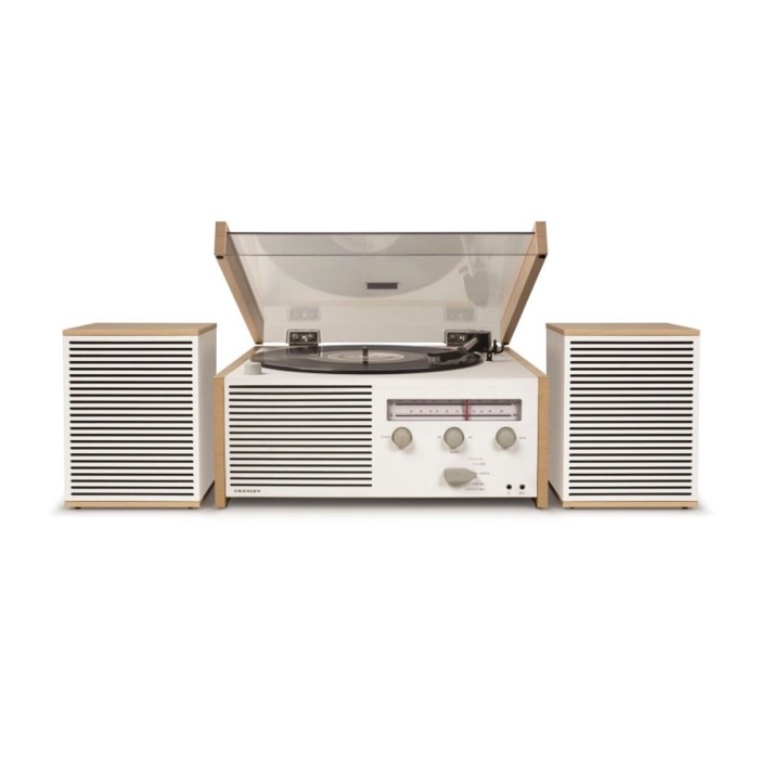 Simplicity meets functionality in the Switch II all-in–one turntable system. Reminiscent of modernist architecture, the Switch II turntable offers an uncluttered, mid century-inspired design packed with today’s tech. The function knob easily lets you to switch between AM/FM radio, playing vinyl, the auxiliary input, and the built-in Bluetooth receiver.