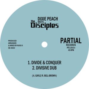 Dub, Ragga … Fresh heavyweight speaker-distressing business from The Disciples with a vocal track from the legendary Dixie Peach (Jah Tubbys, Fashion labels and many more). `Divide and Conquer’ is complimented by no less than 3 dub versions mixed by Russ D.