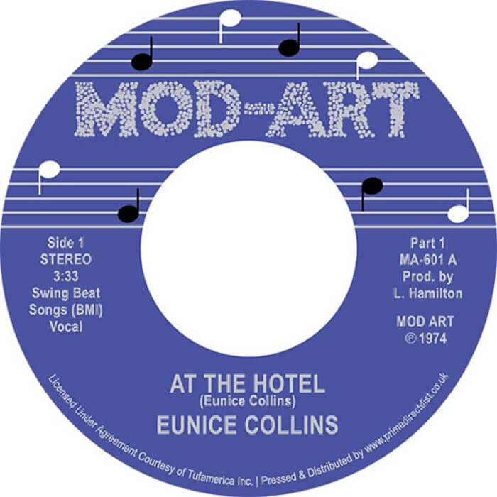Soul … One of the releases we’re really hyped about! This was Eunice Collins ONLY release EVER! Released on the tiny Mod-Art label from Chicago in 1974, the hypnotically alluring “At The Hotel” has finally emerged from the shadows over the last 10 years or so.