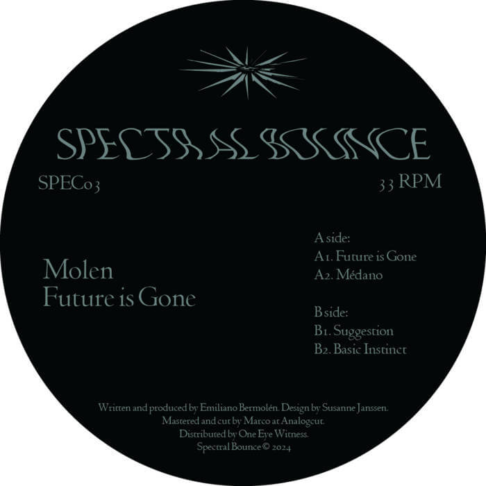 Acid, House, Techno … Spectral Bounce returns with a groovy and moody set of tracks by Uruguayan tastemaker Molen. ‘Future is Gone’ explores dark yet glistening corners of minimal tech house, blending distorted basslines, resonant synth leads, and muffled vocals to create a cinematic aesthetic.