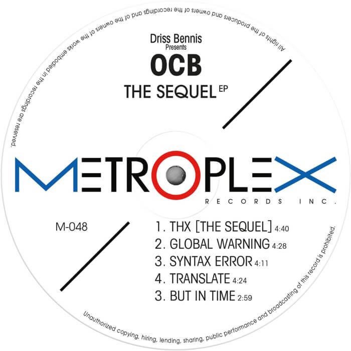 Electro, Techno … Driss Bennis is a new face at Juan Atkins’ Metroplex Records. He debuts his OCB project with “The Sequel”, an expansive five-tracker, covering a wide range of musical territory from funk-infused breakbeats, fast-paced electro bass, chilled downbeats to focused techno.
