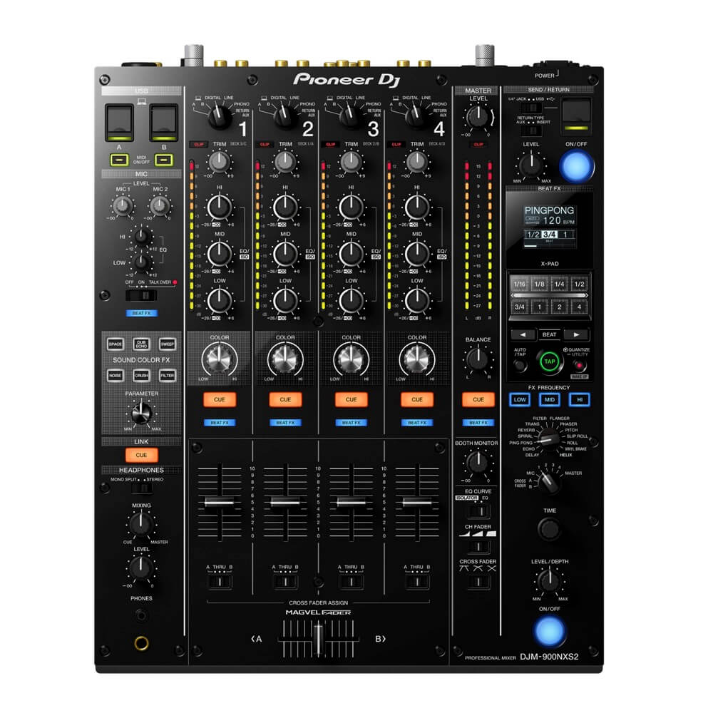 DJM-900NXS2 features Pioneer first ever 64-bit mixing processor for a warmer, more nuanced sound. We’ve fine-tuned the EQ and fader curves and enhanced the FX controls to give you even more creative choice. Plus the versatile DJM-900NXS2 has an independent Send/Return, 4 phono inputs and 2 USB ports – giving you flexibility to set it up your way.