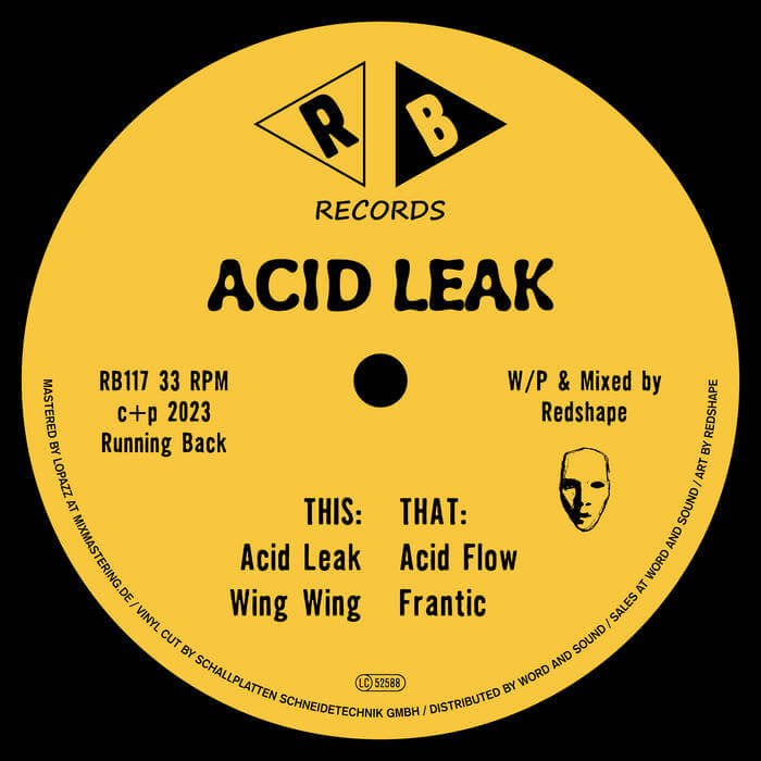 Acid, House, Techno … Redshape’s visits to Running Back are a welcome recurrence and a soothing reminder that techno and house can still come in several shapes and sizes. Related and referring to earlier acid studies on Release Me and to a certain extend on Rise, the masked man continues to find new approaches to the 303 canon with Acid Leak.