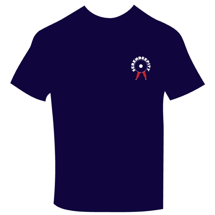 Blue T-shirt with White & Red Serendeepity logo on front. Limited press premium cotton 100%.