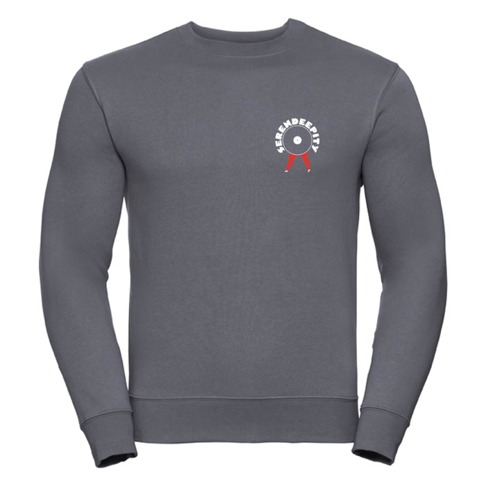 Convoy Grey sweatshirt with White/Red Serendeepity logo on front, printed on high quality Russell Athletics fleece.