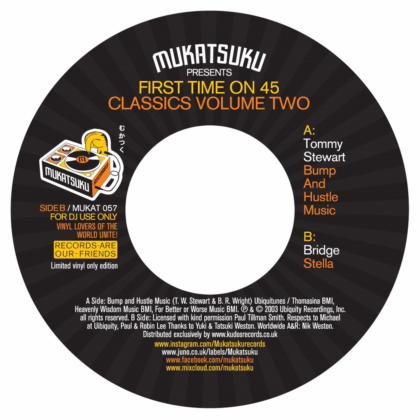 Tommy Stewart & Bridge Mukatsuku Presents: First Time on a 45 Classics, Vol. 2 Seems strange that Tommy Stewart’s seminal rare groove funk anthem ‘Bump And Hustle Music’ has never had a 45 release but Mukatsuku has set out to re address this issue with volume 2 of their First Time On A 45 Classics series.