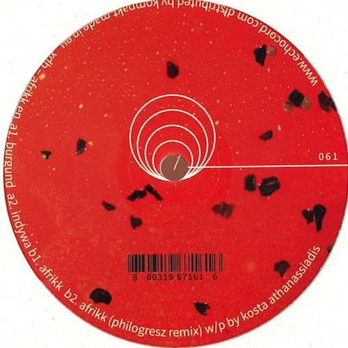 We are happy to announce the 2nd Ep by Kosta Athanassiadis aka XDB on Echocord. Kosta has been very bussy the last years releasing on very fine labels, like Dolly, Sistrum and Harbour City Sorrow. Besidens that he is running his own very respected label Metrolux Music, and djing all over the world. The Afrikk Ep contains 3 original tracks, Burgund, Indywa and Afrikk. All tracks are rough, deep and dubby with house elemenst, typical XDB style. Also the ep contains a remix of the Afrikk track by Philogresz, which is a dub Techno treatment with Detroit feelings. All tracks are perfect for the dancefloor, a good mix of the modern House sound of today and Dub Techno.